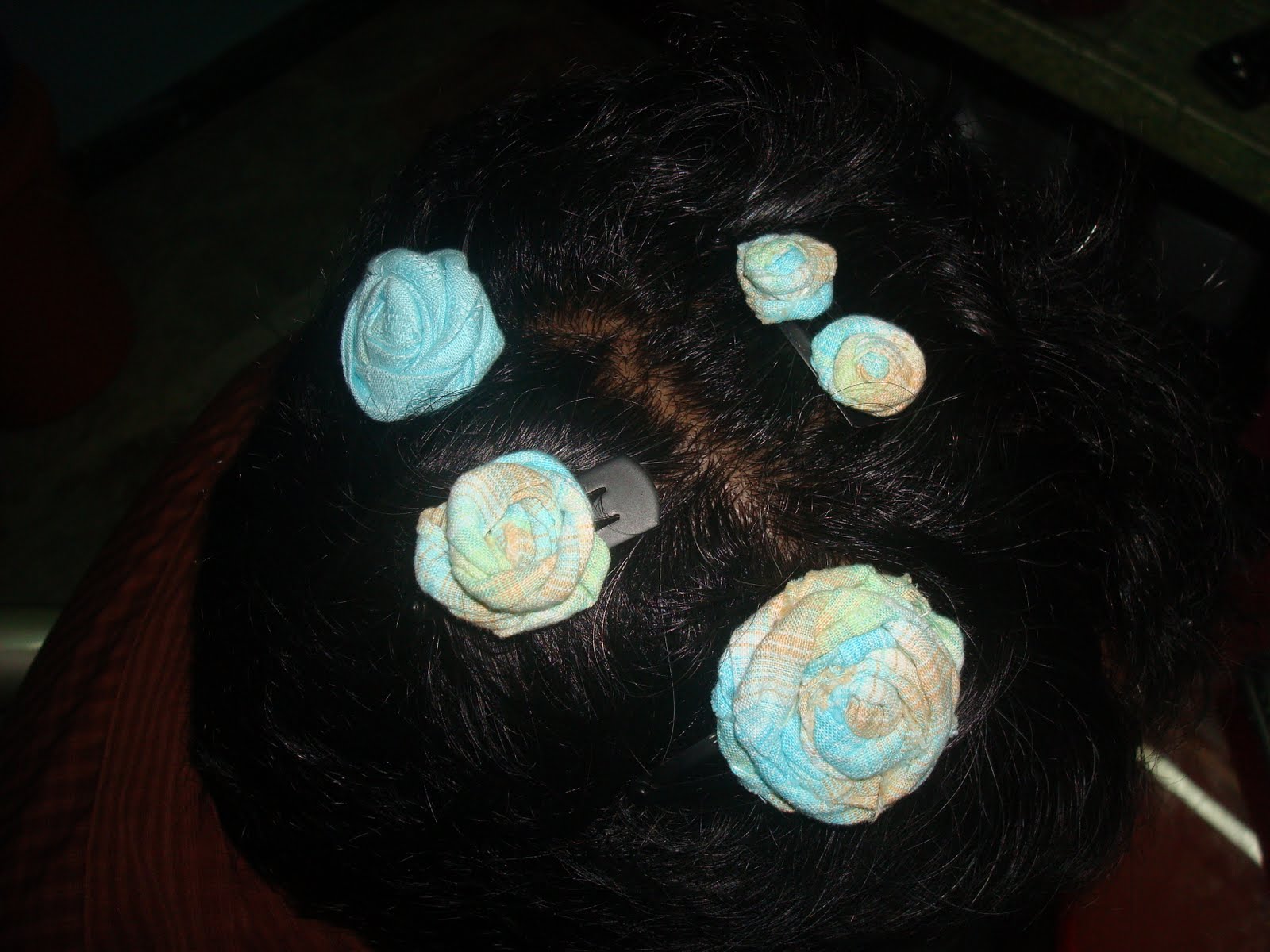 Making headbands, been seeing them on many blogs and they looked like such a fun project. I think this is gonna be a short lived hobby, even though they look nice, nobody really wears headbands here except kids. I do like the last rosette clips though, they are so cute and easy to make. Tonio is modelling them for me, though he doesn’t seem to know that… he was busy playing some video game while I clipped them on and snapped a picture.
