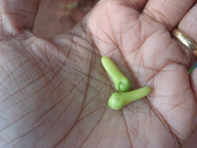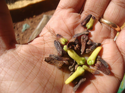 Visited my farm and this is another place that I love, its a perfect place to get lost within yourself and to just walk around observing nature. Here you see two cloves that I just picked off the plant, you dry it and you get the aromatic spice seen below.