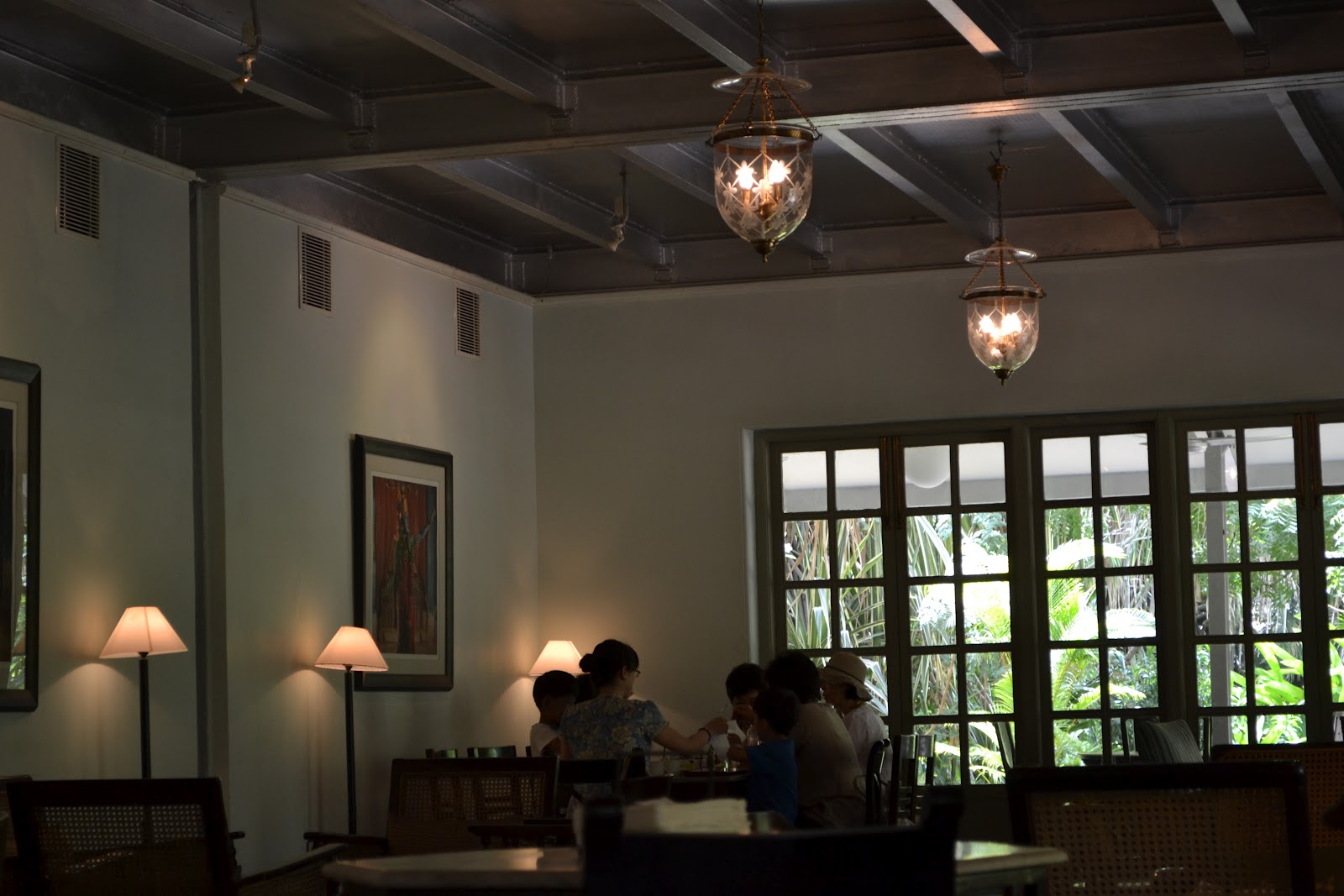 This is a quaint little place with checkered floors and old colonial furniture strewn here and there. We ordered a slice of cheesecake, a smoked bacon sandwich and a cold coffee drink.