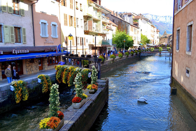 Annecy is also known as the Venice of Savoie, cause of these peaceful canals that flow through the old town. I think Annecy is prettier than Venice though, it’s nestled at the foot of the Alps (as seen in the picture above) and the snow capped peaks with the flowers everywhere and the turquoise waters makes this place incredibly beautiful…