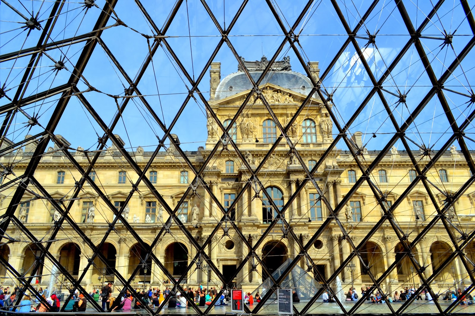 From inside the glass pyramid….
