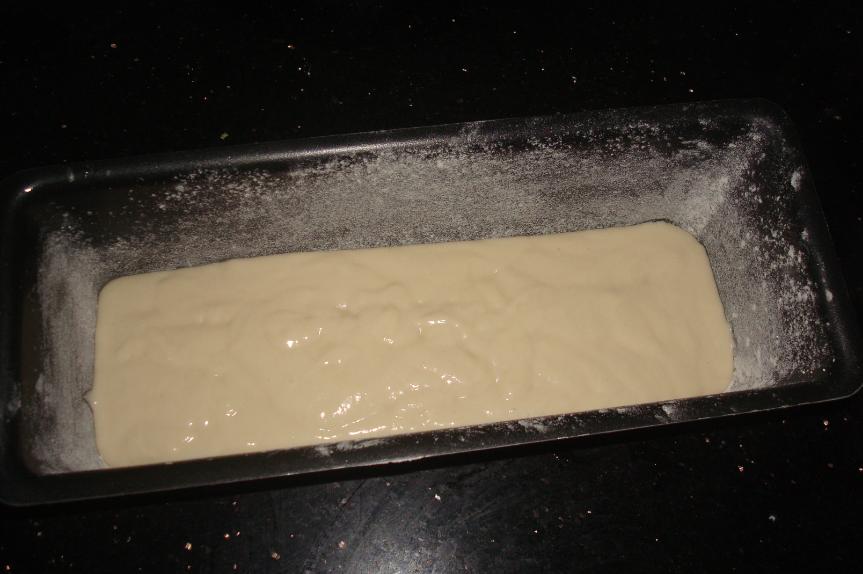 Grease and flour the cake tray, pour in half the batter…