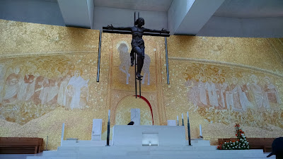 This is the entrance to the new massive church situated right opposite the main shrine,