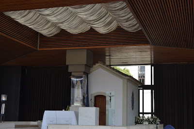 This is the entrance to the new massive church situated right opposite the main shrine,