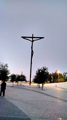 First glimpse of the sanctuary at Fatima, this giant cross welcomes you
