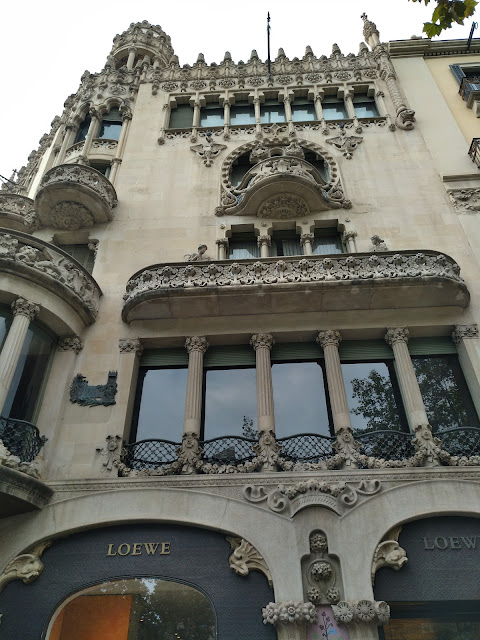 This is the building near the Gaudi building that is equally impressive, or maybe even more… check out that window, the carving on it is incredible.