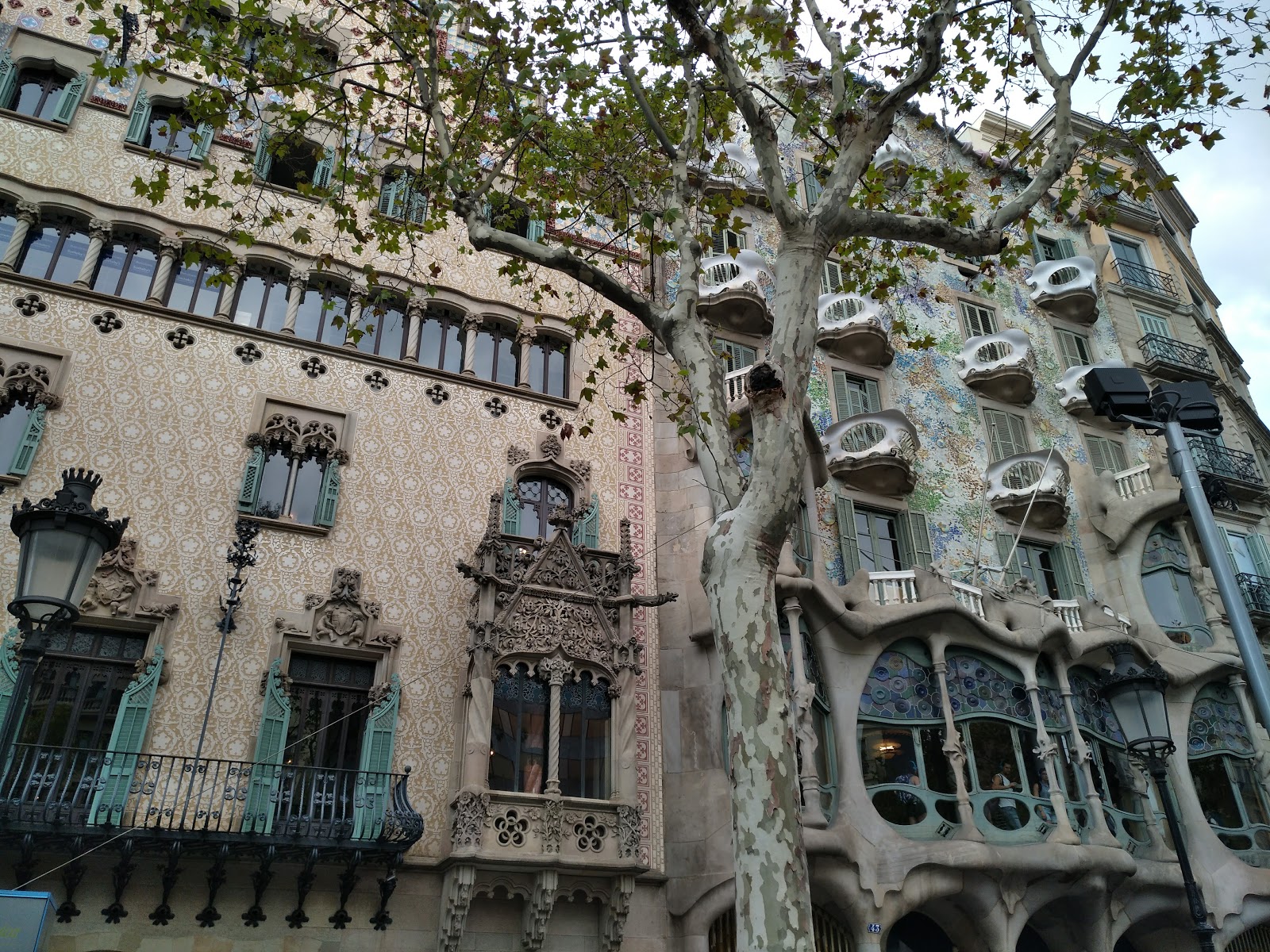Both the buildings together, the pretty one and the Gaudi building near it.