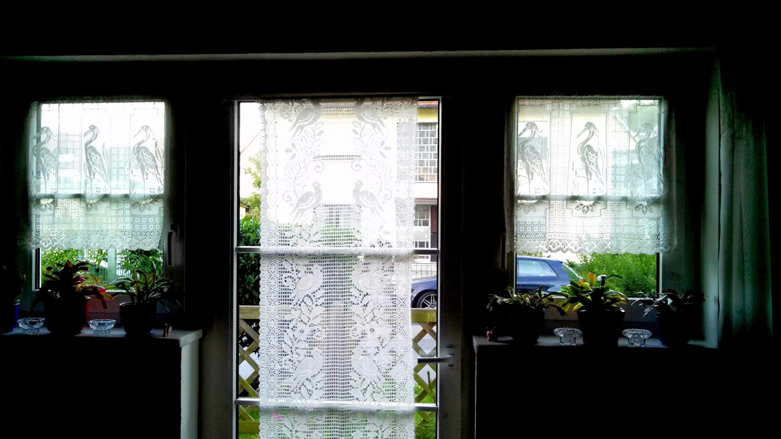At the other aunt’s place… pretty lace curtains…