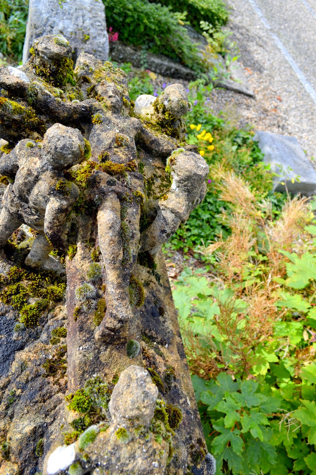 Saw this on a grave, worn out statues of Christ on a cross… and people carrying Him.