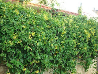 Went for a walk in the colony and saw this delicate yellow flowering plant covering the entire compound wall… it looked so pretty.