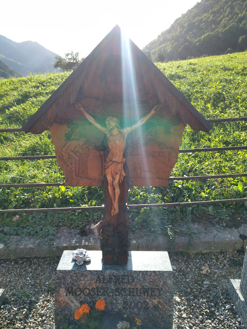 Apparently this form of marking the graves was brought about by Walter Cottier, who did not have enough money to erect a sculpted metal cross over the grave of his grandfather. So he thought of sculpting one from wood, and that’s how this tradition caught on. And you can see it here, in his grave… he is depicted as sculpting a cross, and he is the architect of many these crosses that decorate the graves of many people in his little town.