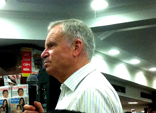 So Jeffrey Archer was in town recently and I went to see him at one of the Landmark outlets. I am not that into him, I’ve read only two of his books: ‘Kane and Abel’ and ‘Not a Penny More, Not a Penny Less’ and both of them were lent by friends. While I remember thinking Kane and Abel was nice, I loved Not a Penny More, Not a Penny Less… only a very brilliant mind could have weaved such an enticing and hilarious story. I’ve never read any of his other books, I guess it was because most of his characters seem to resemble their creator, in the sense that it is not hard to imagine Archer being convicted of whatever he was convicted of, because his characters are unscrupulous like that. Jeffrey Archer is in the midst of penning down his Clifton Chronicles, and as he admitted at the meet, these series are more or less autobiographical in nature. I think he was here to launch the third book in the Clifton Chronicles, and the crowd seemed to love him. He enthralled the audience with his wit and humour, age is no barrier for this man, he exuded a zestful charm and his enthusiasm was contagious. I got a book signed by him… I wish he had used a blue pen though, can’t really make out the difference.