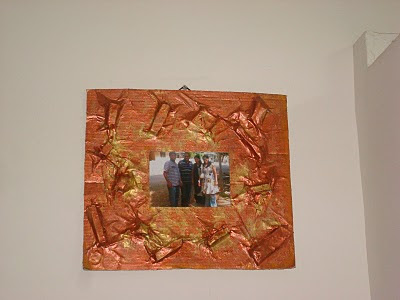 So when the construction work was going on at home, I collected some broken pieces of tiles, marbles, stones and other junk. Made this frame using those odd bits and pieces and then used metallic paint on it. By the way those are my siblings, this was taken during the holiday season, its one of my favourite pictures (check the link to get a clearer view). I like the way the light falls softly on us, and I love the dress I am wearing (I call it my TCM dress) along with my favourite pair of jeans and of course I love those three funny people near me, they are all the entertainment I need… God in His infinite wisdom knew that I wouldn’t grow up to be socially active so he created three crazy siblings who have no choice but to hang out with me and a whole horde of authors who create the characters I interact with on a daily basis. I sometimes wonder though how it would be to be at the other end of the spectrum… like going out to the cool places and hanging out with the hep and happening crowd and dancing away the night and coming home just before dawn totally exhausted but living it up. Would be equally cool I guess…
