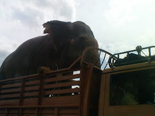 Dinesh, a friend, clicked the following pictures when he was driving down somewhere… I thought they were funny. Here you see rear view of the elephant…