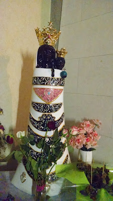 A statue of black Mother Mary with child.