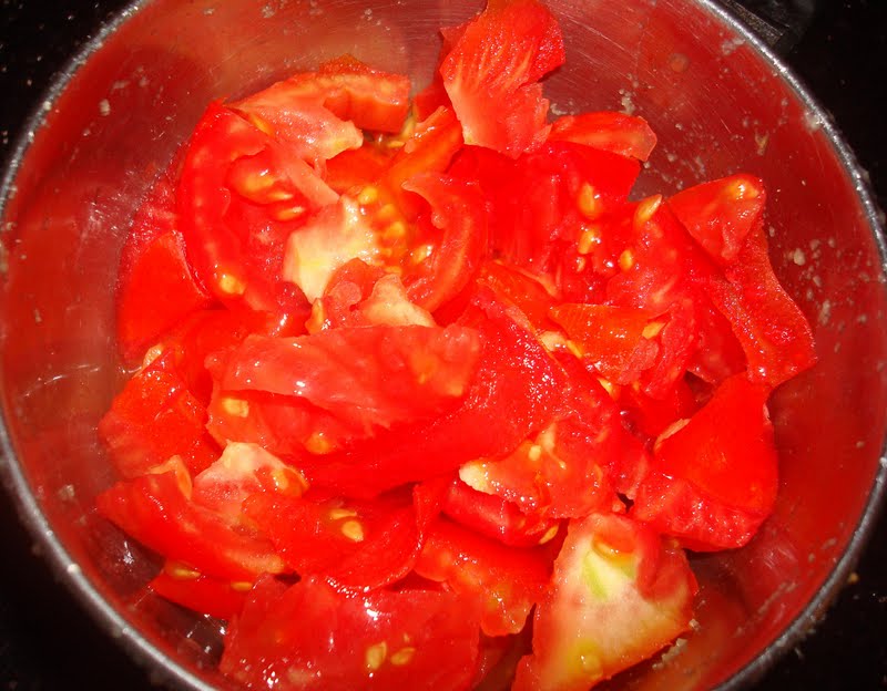 Wash and roughly chop up a few tomatoes, blend them well with a little water and set aside.