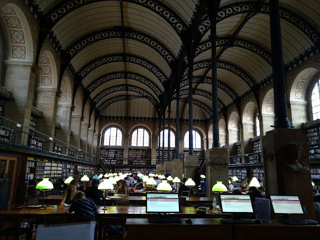 We then walked to Bibliothèque Sainte-Geneviève (Sainte-Geneviève Library), a public and university library in Paris which inherited the collection of the Abbey of St. Genevieve, and a kind librarian lady took us on a short tour of the place.