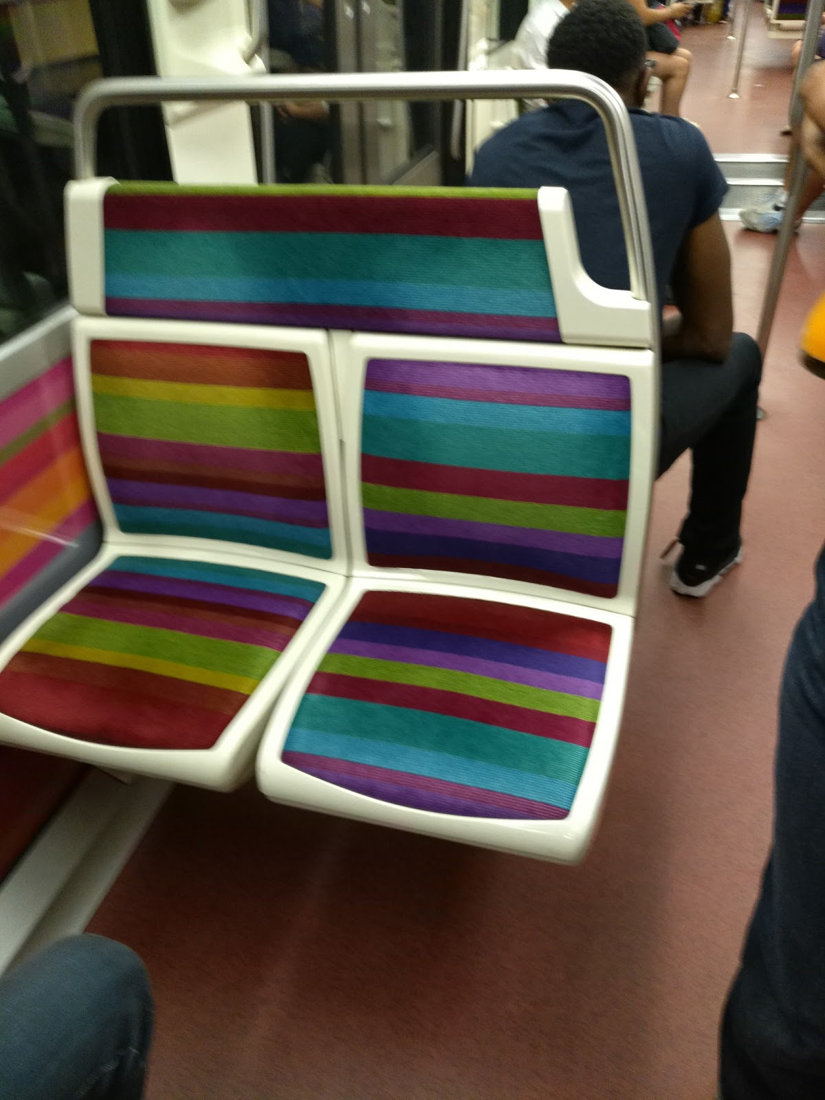 The only shot of the metro train I managed to take… these colourful seats inside, forgot to take pictures as it was arriving or departing. Went to the hotel pretty late around 12:30 am, showered and went straight to sleep. Next day the plan was to explore the french countryside and live in a small village.
