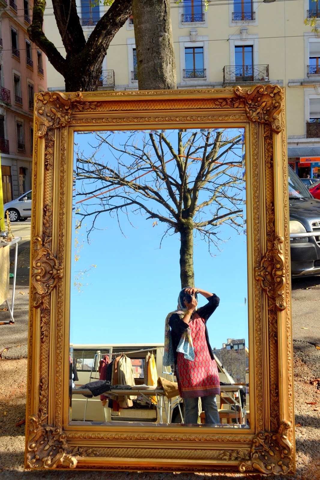 A really large mirror… and me, I look like a walking advertisement for Anokhi (both the kurta and the scarf are from Anokhi). It was starting to get cold towards the end of October…
