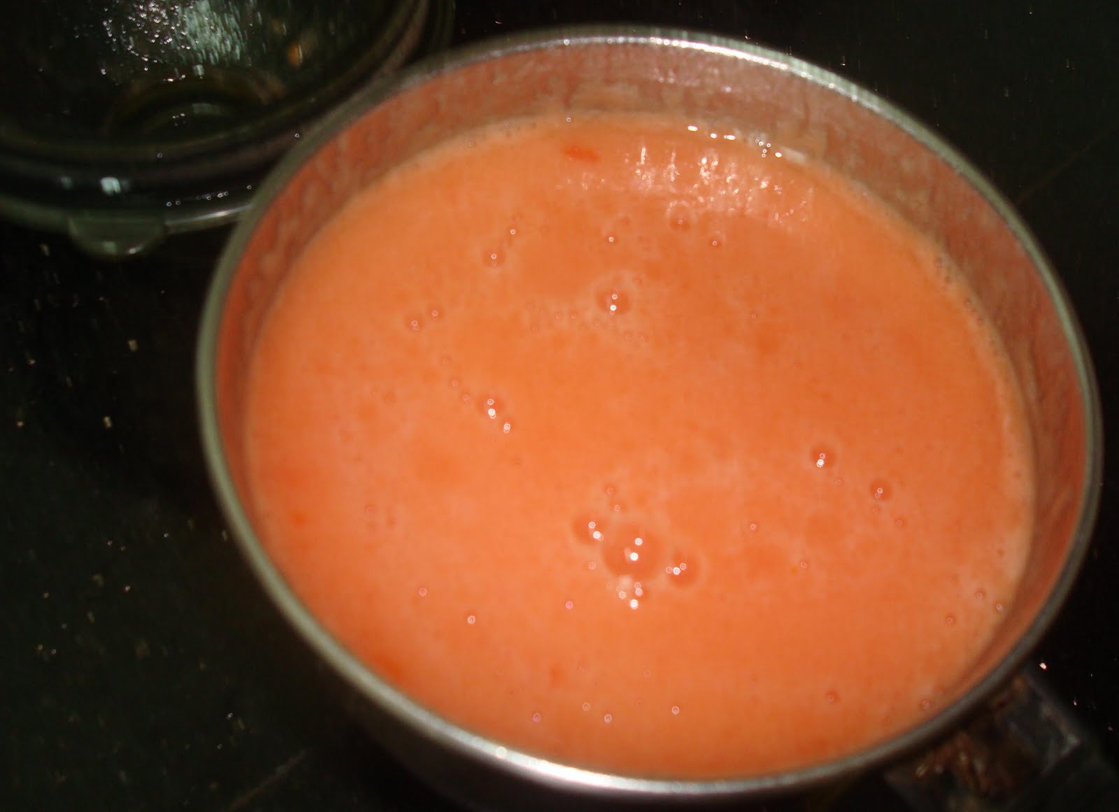 Now check your tomato puree, it will look like this. Put in a little sugar (bout a teaspoon or two depending on your taste) and mix it up, this is to remove the acrid taste. Now add necessary amount of salt. Taste the sauce, it should have a mildly sweet flavour.