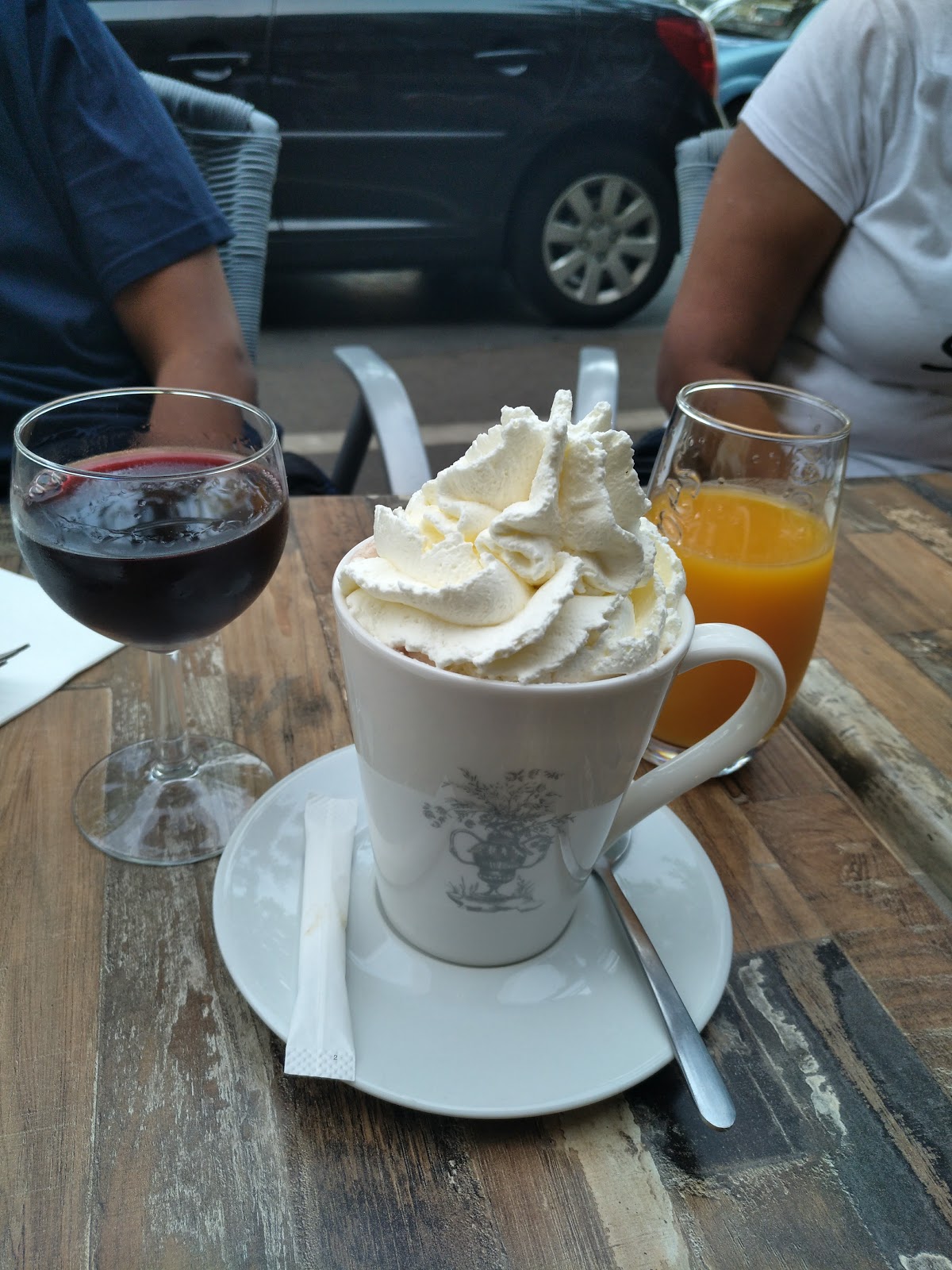 Went to a nice crepe place, Le Krépiôt, for a late lunch… some wine, cafe viennois and orange juice.
