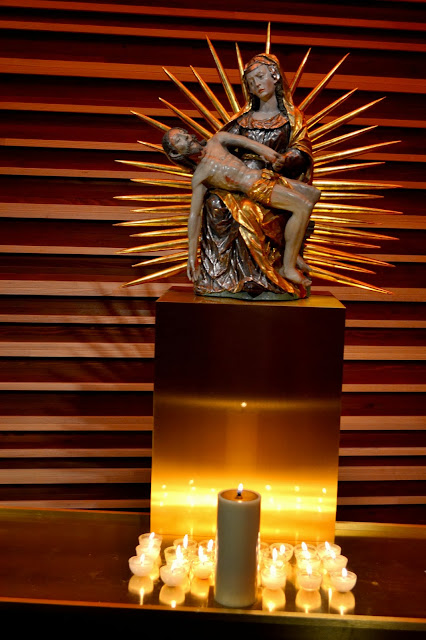 A statue of Mother Mary and child…