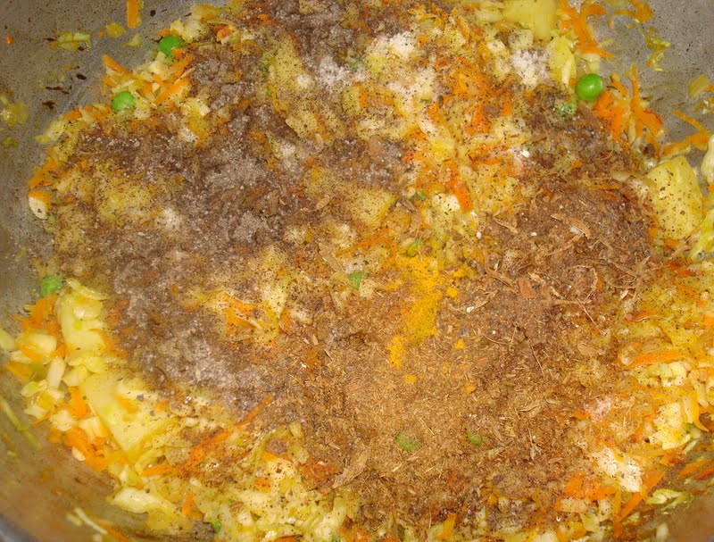 Add salt, pepper, a little jeera powder and garam masala powder… mix it around.