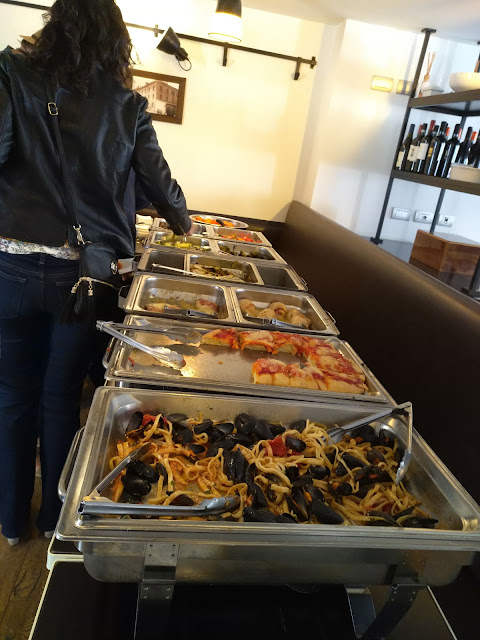 My plate with some really good pasta, tuna roll, and ham puffs…  so while taking the food, the Italian guy at the counter was asking us whether we were Hindus, and I replied no, we are Christians. Later, my brother told me that they weren’t asking about your religion, they were asking whether we were from India, cause they probably know/read that Indians don’t eat meat/beef. Anyway, everyone over there was really friendly…