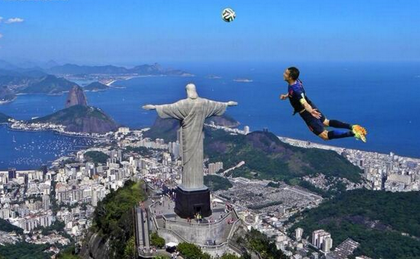 This was quite funny, Persie soaring above Christ the Redeemer statue in Brazil…